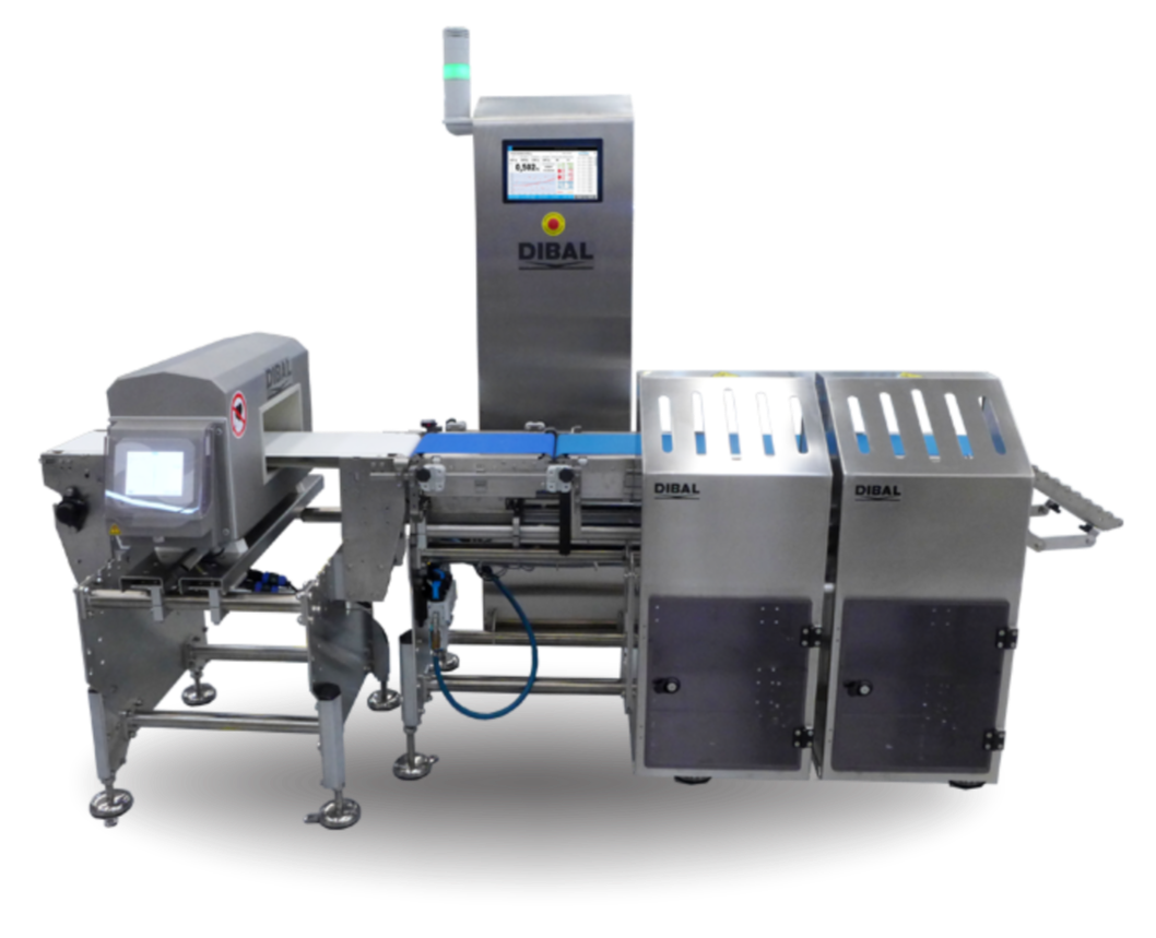 El Dibal COMBI-5000 es un sistema integrado que combina dos funciones esenciales para el control de calidad en las líneas de producción: pesaje automático y detección de metales.